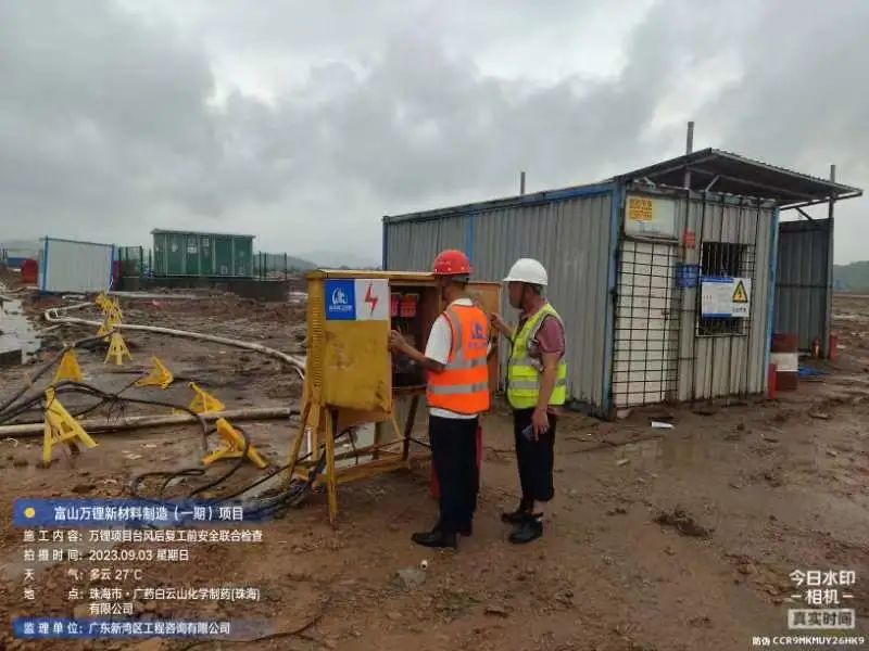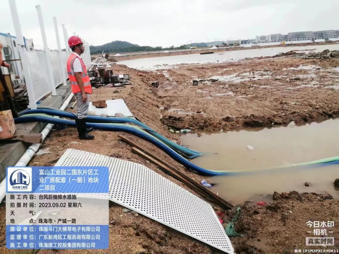 在斗門大橫琴5.0產(chǎn)業(yè)新空間萬鋰新材料(一期)項(xiàng)目現(xiàn)場(chǎng),開展了臺(tái)風(fēng)后復(fù)工復(fù)產(chǎn)安全大檢查,現(xiàn)場(chǎng)組織排水、圍擋修復(fù)各項(xiàng)工作。