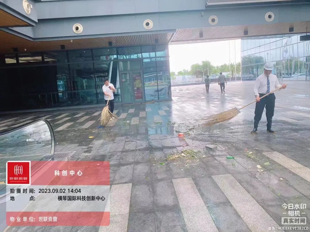 第一時(shí)間對(duì)園區(qū)環(huán)境進(jìn)行清障復(fù)原,完成園區(qū)所有枯樹樹葉清理、樹木扶正,樹撐檢查加固;完成園區(qū)公共垃圾桶、煙灰柱、地毯復(fù)原工作;檢查受災(zāi)情況并進(jìn)行修復(fù),檢查設(shè)備機(jī)房、電梯是否正常運(yùn)行等,確保企業(yè)可正常辦公。其中橫琴國際科創(chuàng)中心園區(qū)應(yīng)急避難場(chǎng)所本次接待人員約1500人次,產(chǎn)生生活垃圾約3噸,人員撤離后已及時(shí)清理。