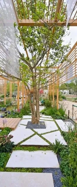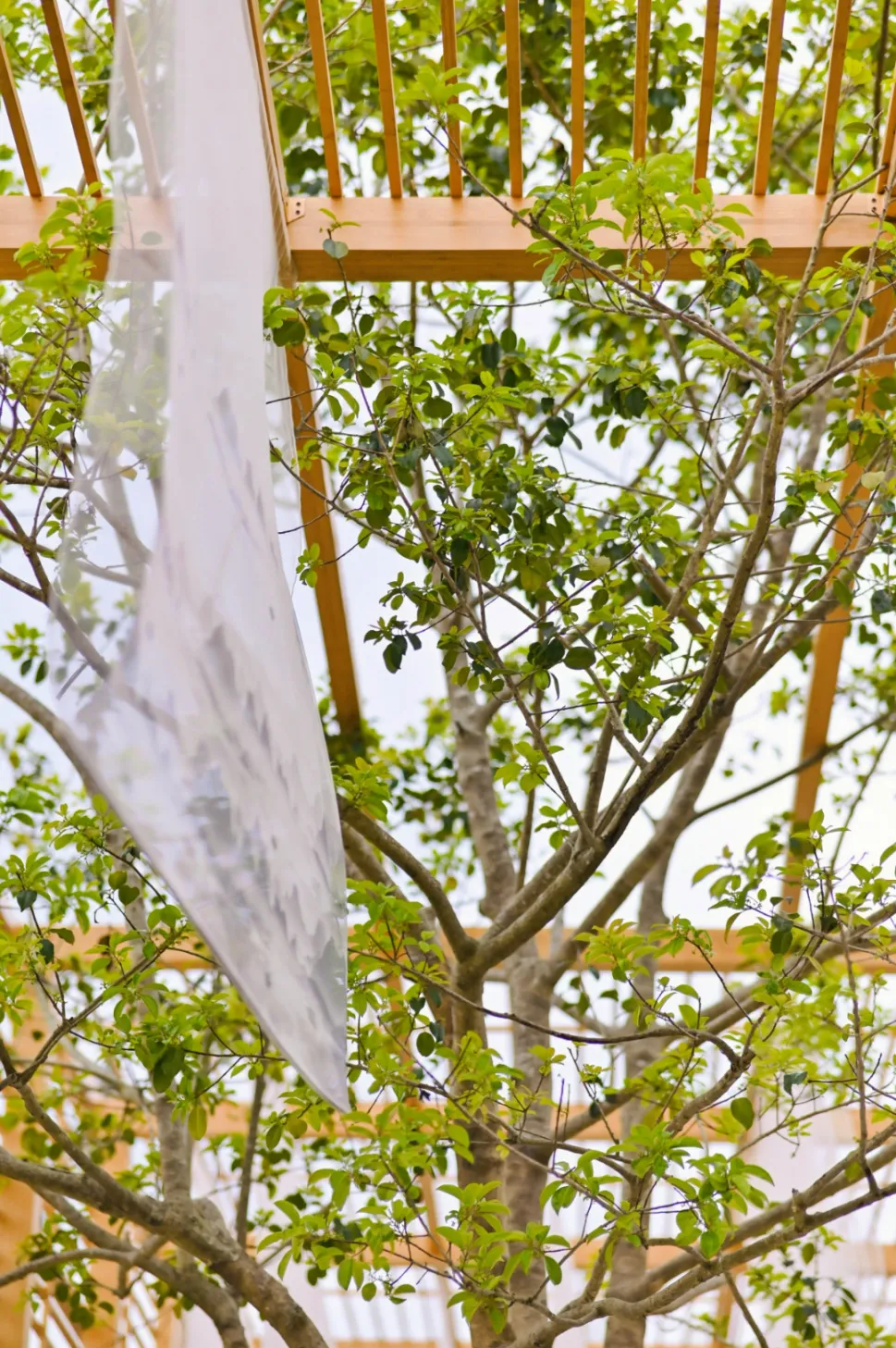 樹影婆娑,花香四溢,檸檬草、龍井茶、毛尖、柑橘、迷迭香等香草類植物,洋溢著沁人的花草清香,與茶文化主題交織呼應。