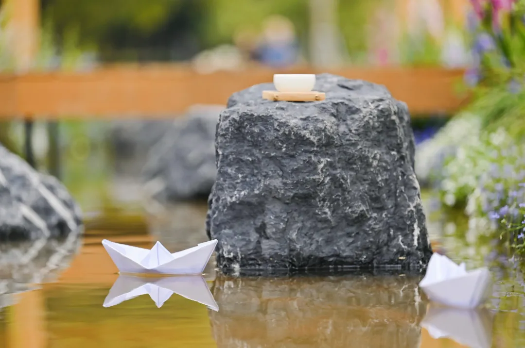 歷史上,珠三角是明清海上絲綢之路上的重要樞紐,中國的茶與茶文化通過海上絲綢之路傳遍世界各地。橫琴展園以流動水渠與懸挑水上茶品,巧妙象征了從明清海上絲綢之路到現代共建“一帶一路”的歷史傳承。