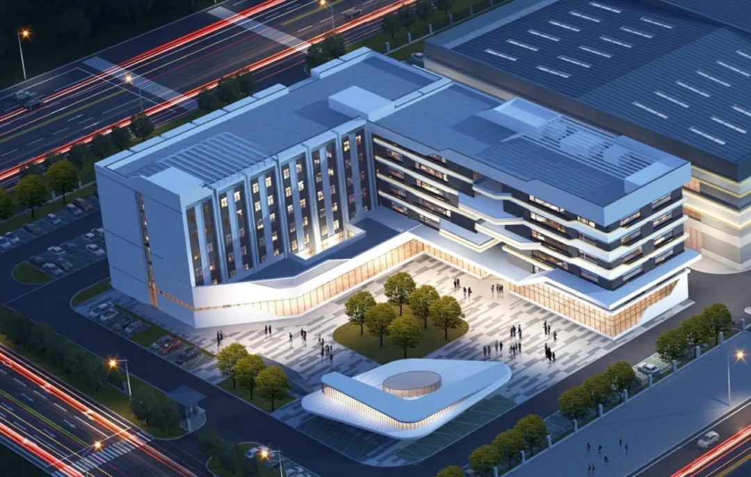 廠房形體簡潔,突出高效生產特點,辦公樓及宿舍樓通過陽臺、露臺、線條等多種形體組合,展現(xiàn)出前衛(wèi)、科技的外立面形象。