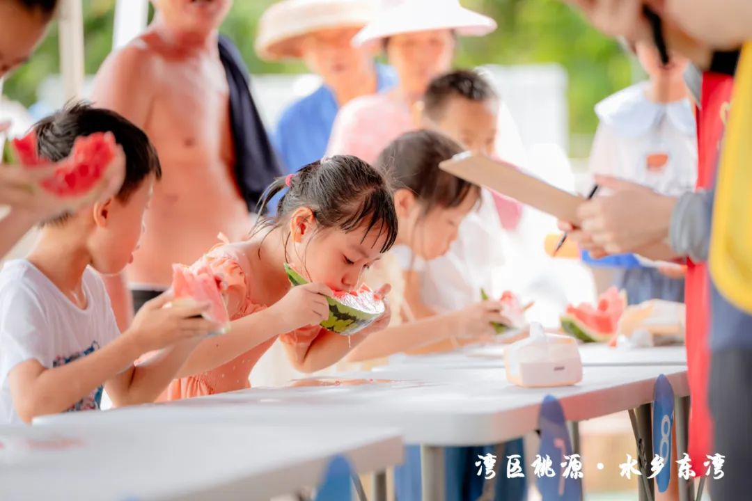 隨后,現(xiàn)場的水車伴著歡笑聲噴灑出陣陣水霧,也標志著此次“東灣夏日清涼大作戰(zhàn)”活動正式開始。在接下來的兩天時間里,活動將充分結(jié)合東灣村民俗文化和稻田、河涌等良好的生態(tài)環(huán)境基底,通過農(nóng)艇競渡、趣味戲水、非遺剪影、東灣美食、清涼集市等元素,將傳統(tǒng)鄉(xiāng)村元素與現(xiàn)代競技、活動相融合,打造一系列清涼刺激的互動體驗。活動形式豐富多樣,既有團隊合作的競技項目,也有輕松愉快的趣味游戲,還有特色清涼集市供游客休閑購物,可謂是“面面俱到”。