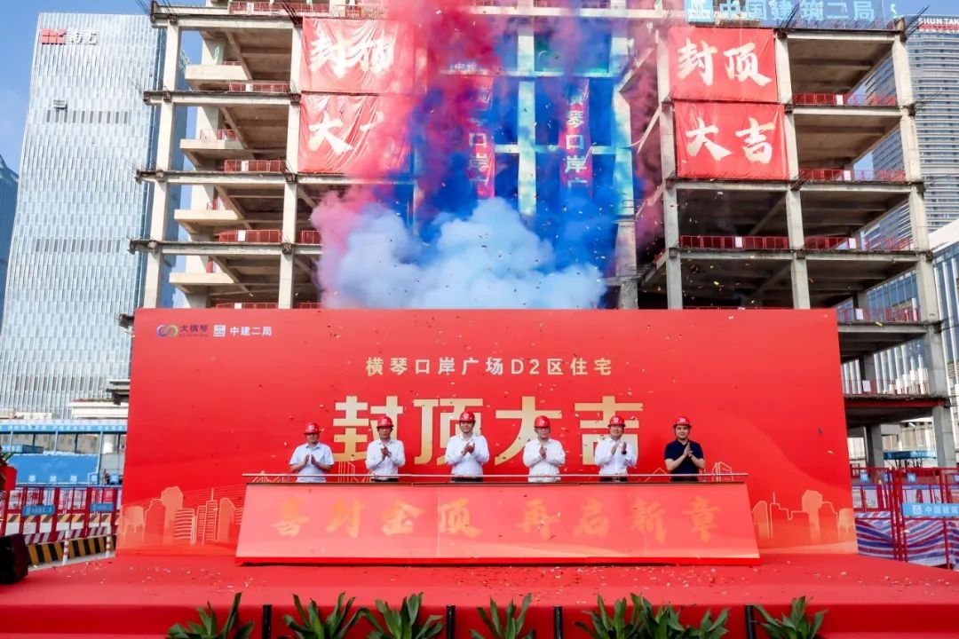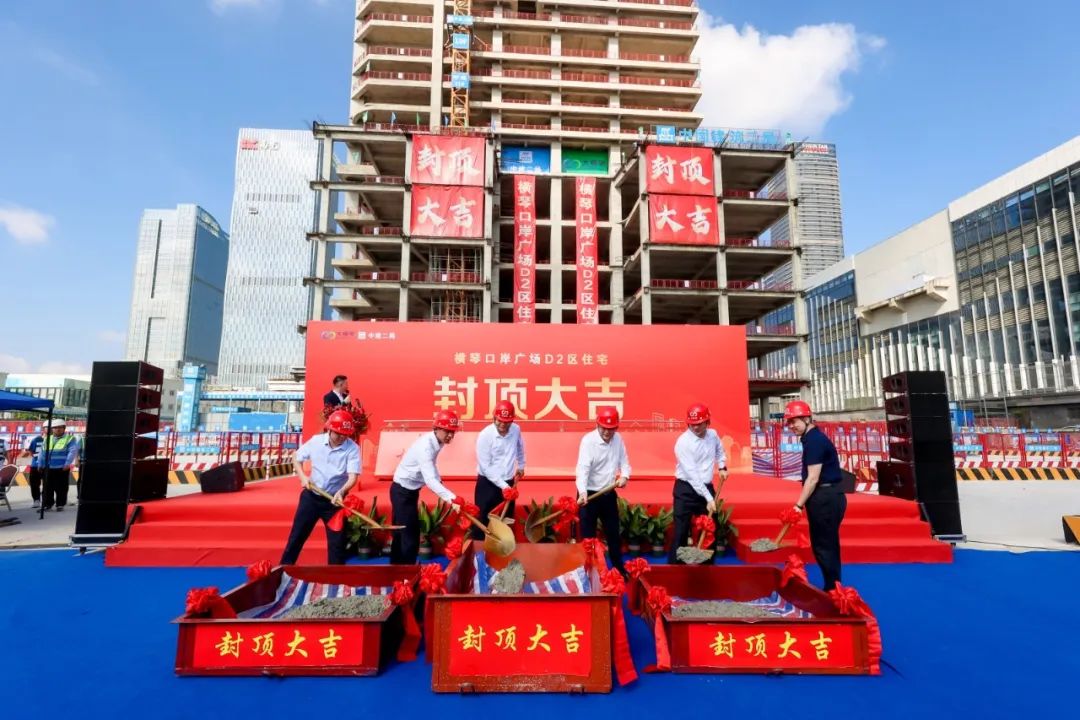 9月27日上午,由珠海大橫琴集團有限公司(以下簡稱大橫琴集團)下屬企業(yè)珠海大橫琴口岸實業(yè)有限公司建設的橫琴口岸D2區(qū)住宅主體結構順利封頂。大橫琴集團黨委副書記、董事、總經(jīng)理王宇聲,中建二局華南公司黨委書記、董事長曲紅波,大橫琴集團總經(jīng)理助理呂海濤等領導嘉賓出席儀式,各參建單位代表及項目一線職工共計100余人參加活動。