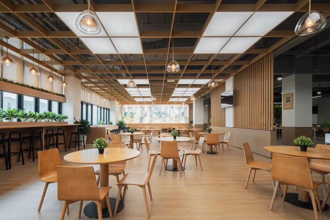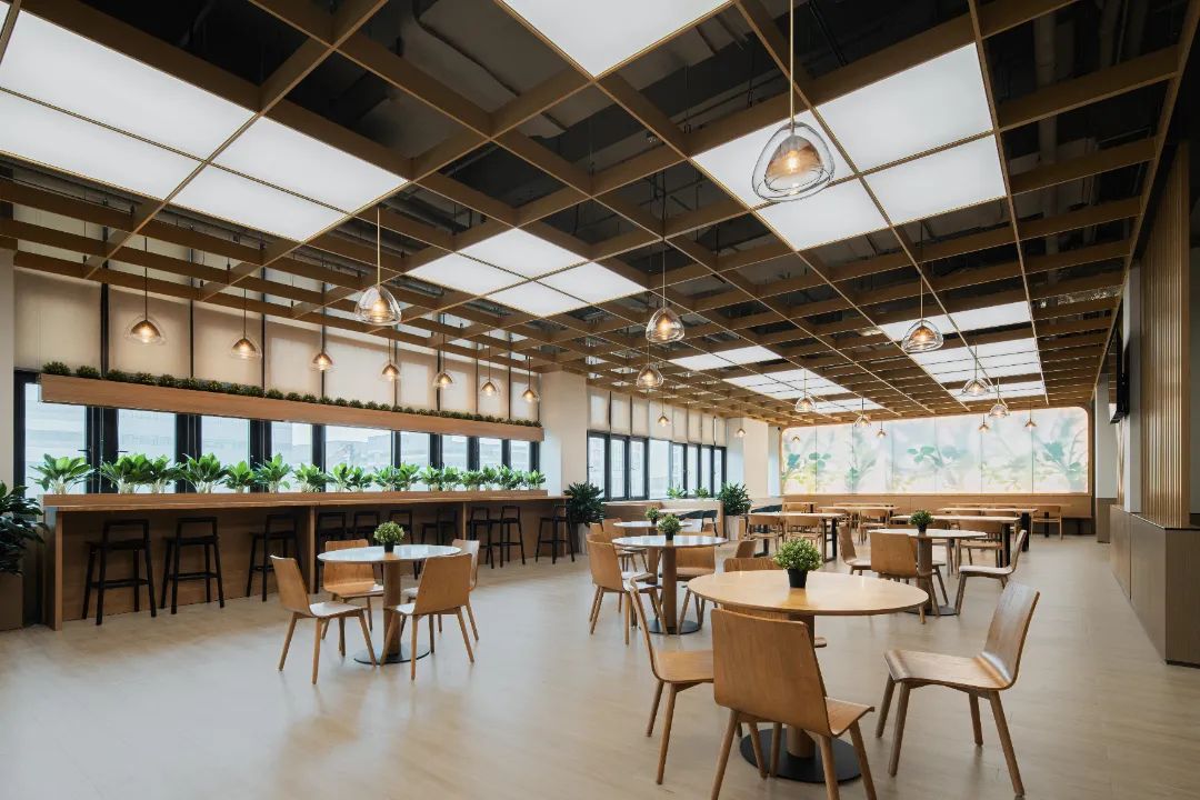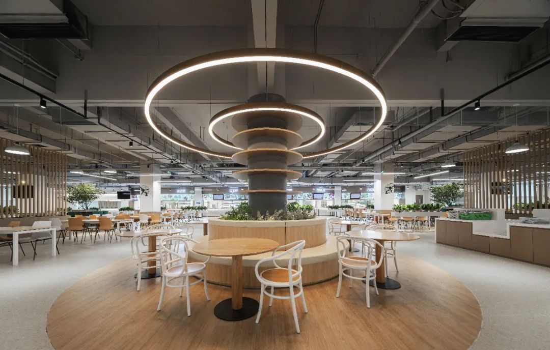 食堂在設(shè)計(jì)時(shí),就充分考慮這還是一個(gè)社交空間,空間上分割成滿足不同社交需求的空間,靈動(dòng)多元。