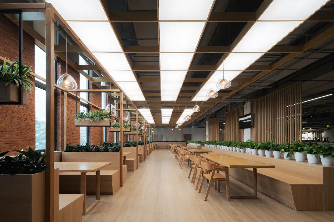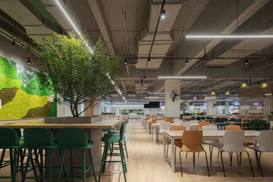 走進(jìn)“廠其林”食堂,仿佛將一片小森林搬了進(jìn)來(lái)。