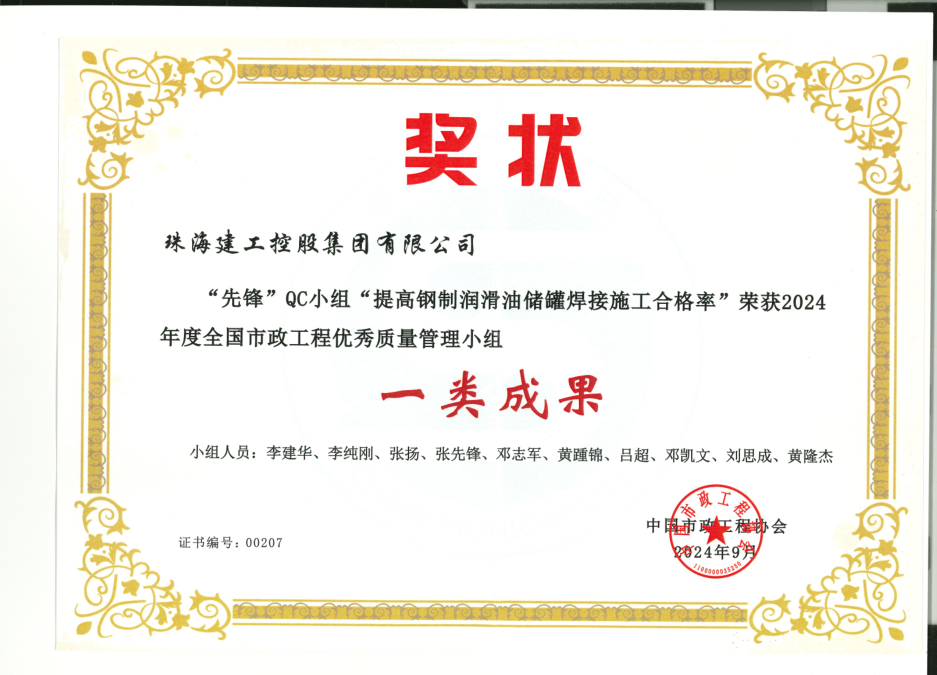 在本次QC小組活動(dòng)中,珠海建工集團(tuán)開展了一系列業(yè)務(wù)培訓(xùn),組織技術(shù)條線輸出了QC成果共33個(gè)課題,其中《提高鋼制潤滑油儲罐焊接施工合格率》獲得國家級一類成果;其余成果中15個(gè)課題榮獲省級優(yōu)秀QC成果:2個(gè)課題榮獲省級一類成果;6個(gè)課題榮獲省級二類成果;7個(gè)課題榮獲省級三類成果;技術(shù)研發(fā)中心臨時(shí)負(fù)責(zé)人李建華榮獲優(yōu)秀發(fā)布者,本次QC小組活動(dòng)的優(yōu)異成績,實(shí)現(xiàn)了公司QC成果獎(jiǎng)在國家級獎(jiǎng)項(xiàng)、省級獎(jiǎng)項(xiàng)方面零的突破,為公司工程項(xiàng)目評優(yōu)奠定了基礎(chǔ)。