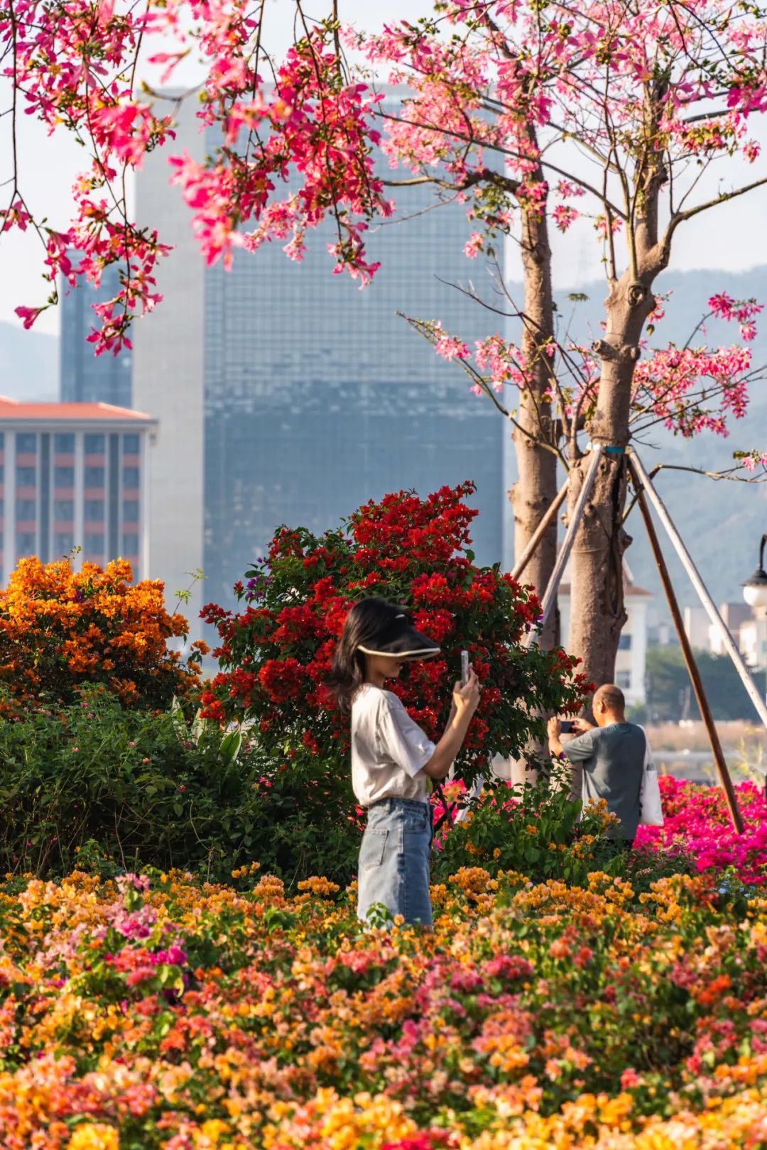 花海長廊讓現代化生活與自然美景之間的距離不再遙遠。花期期間,來到這里的有工作之余來放松心情的橫琴居民、享受自然風景充實周末時光的澳門市民、來南方體驗姹紫嫣紅的冬天的各地旅客……