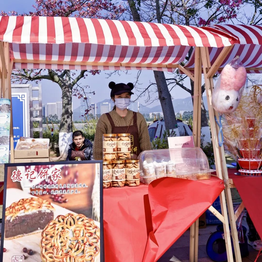 除此之外,每逢周末,一號、二號和三號驛站開展東灣墟市活動,斗門蓮洲鎮東灣村農產品市集走進花海,帶來優質的本地產綠色農產品、特色手工糖水和農副產品、非遺點心小吃等,吸引了大批市民游客上前詢問和購買。游客在享受美景、體驗美食之旅的同時,亦促進了鄉村振興與滿足城鎮消費需求的良性循環,鄉村市集在花海煥發出了新活力。